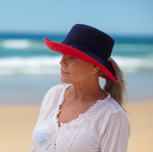 The Reversible Ponytail Hat is one of Topshow's most versatile and distinguished hats to accommodate all head sizes and hair styles. It is completely reversible allowing the user to change to the other colour to suit their mood or outfit. It is also UPF 50% to keep you protected from the sun. It is Australian made using only the best quality fabrics. Washable and foldable, the Reversible Ponytail Hat will always keep its shape and last for years.